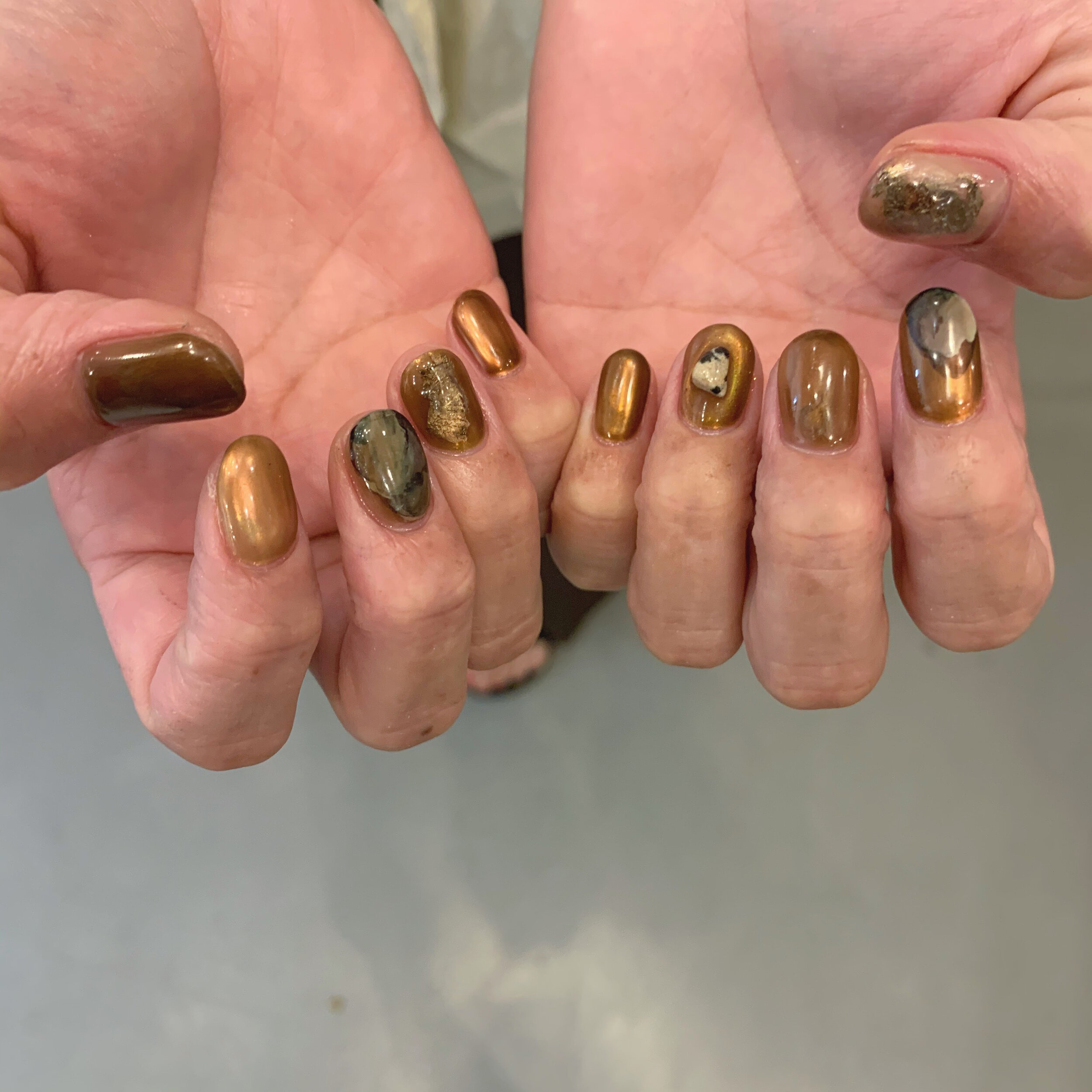 今日はブラウンカラーのデザインネイルのご紹介です!