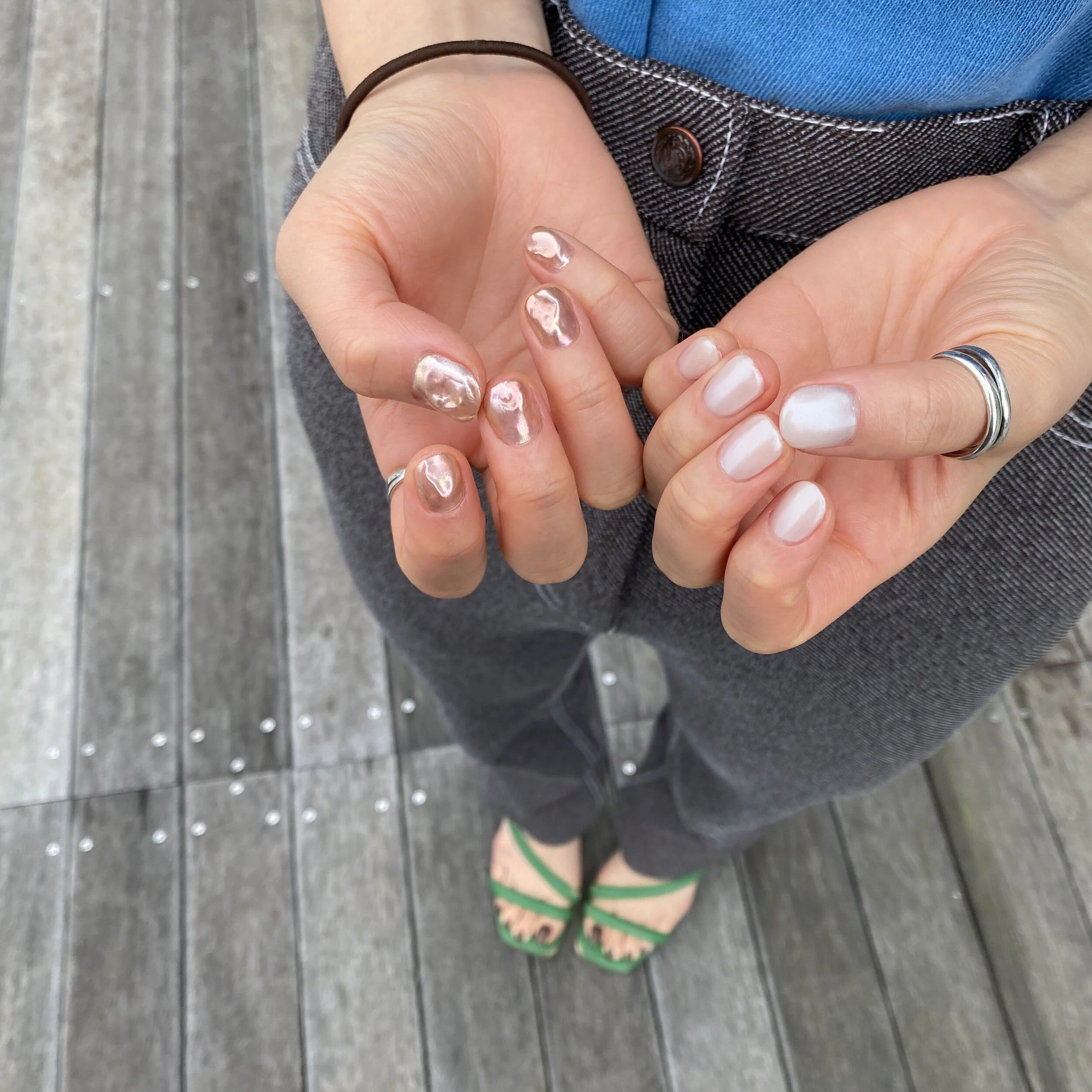 DLAWでも1年通しても人気なミラーネイル。使い方は様々ですが、定番に全体に乗せるのも良し、部分的に艶感を入れても可愛い万能アイテムです!ぜひアートのご参考にまでに、、、☺️❤️