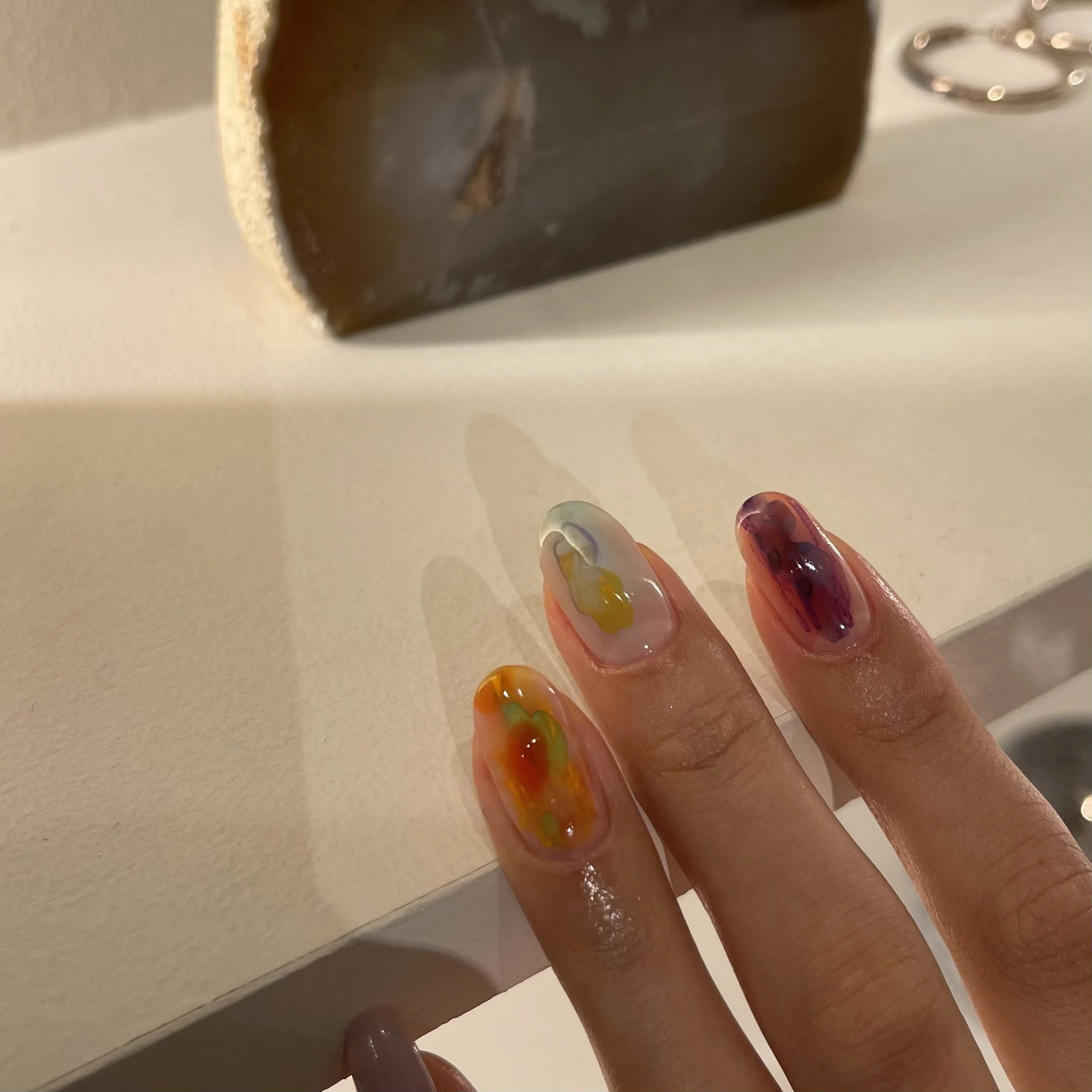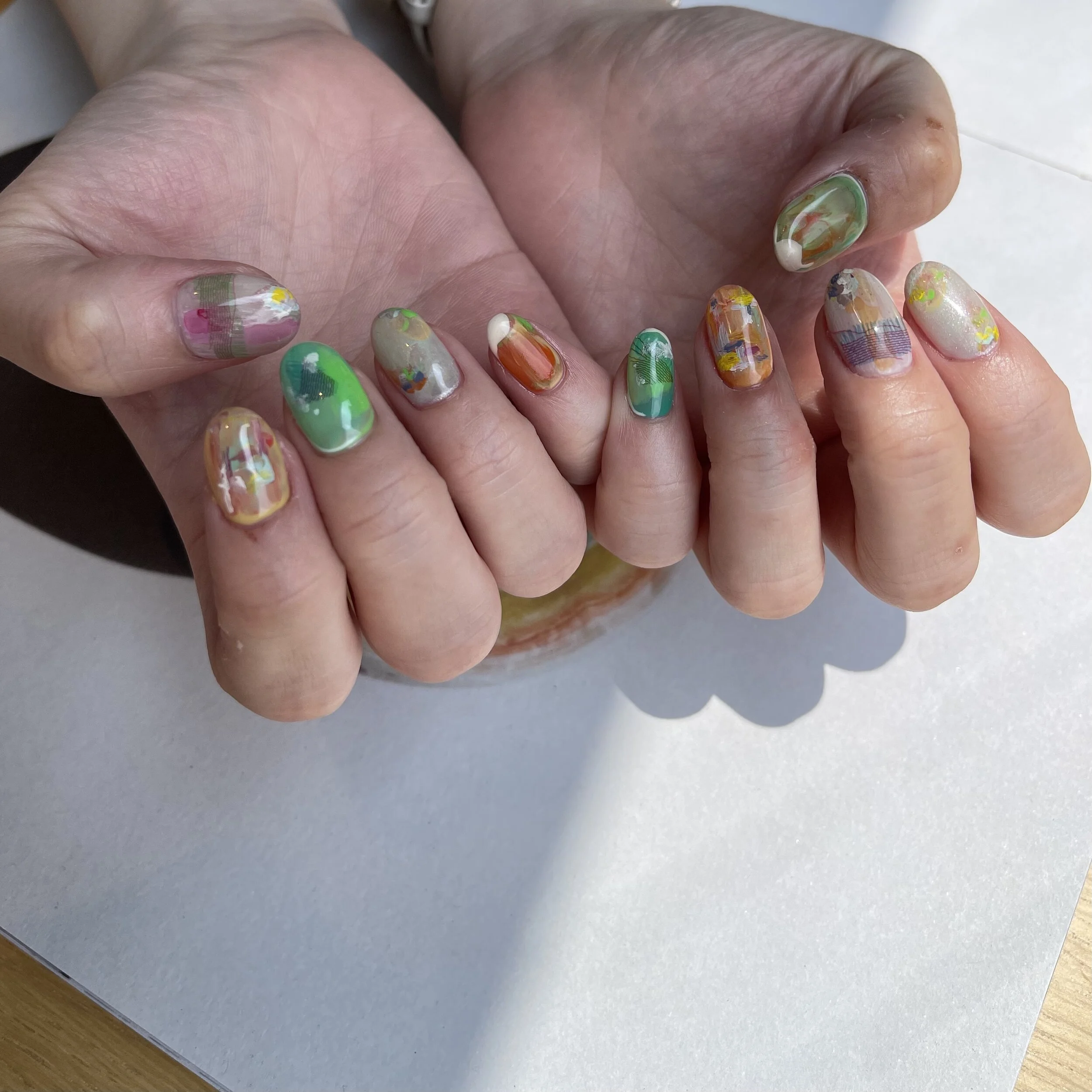 ビタミンカラーでちゅるんとした質感や絵の具、ペンで色付けたりと質感を変えるとより一層カラフルなネイルが楽しめます^ ^